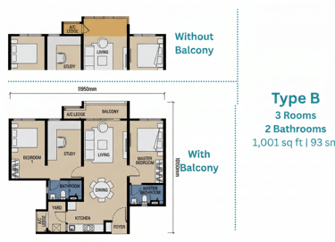 Discover a sanctuary where open layouts meet panoramic city views. Whether you’re a growing family or a professional seeking a versatile home office, our three distinct floor plans - Type A, B, and C- offer the perfect blend of functionality and style.